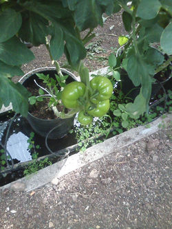 ![]() Fig.11- Cacho de tomate | ![]() Fig.12- Flor do tomate, e está toda "enrugada" porque as abelhas fizeram a polinização |